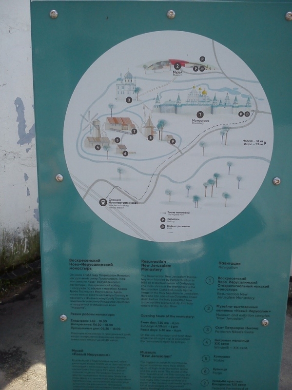 В воскресенье днем мы с детьми стояли на платформе Новоиерусалимская. Пройти до монастыря оказалось очень просто, по дороге установлены стойки-навигаторы в помощь паломнику.