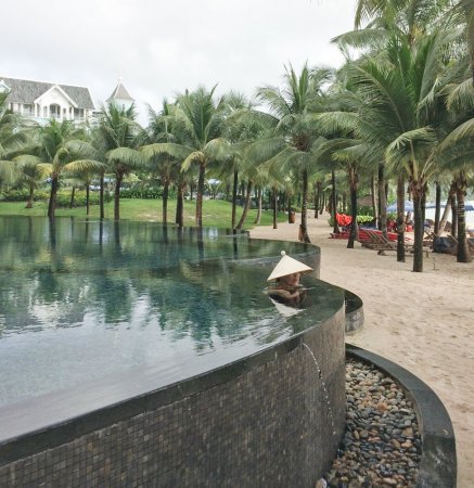 В отеле JW Marriott Phu Quoc Emerald Bay Resort&SPA есть несколько бассейнов: звезда всех фото, бассейн в виде ракушки — глубокий, только для взрослых; большой, с лагунами под пальмами — семейный, рядом — мелкий для детей.