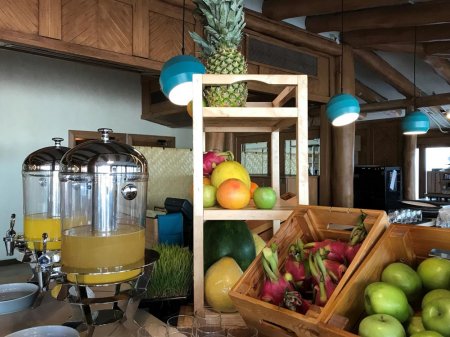 Завтрак — как и обед, и ужин — подают также в ресторане на пляже Beachcombers. Уютная соломенная хижина с паназиатской кухней — чудесное место для безмятежных посиделок. От крылатых "едоков", шустрых птиц, столики на террасе охраняет человек с соколом на руке: хищник отгоняет непрошеных гостей одним своим грозным видом.
