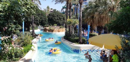 Простояв несколько минут в очереди на вход в парк, в суматохе мы немного не туда зашли. Вместо основного парка оказались в Карибеан — аквапарке! Благо мы предусмотрительно надели купальники под одежду, специально для водных аттракционов, которых и в основном парке множество.