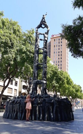 Нас поразил своей высотой и живостью исполнения монумент als Castellers, который представляет собой праздничную народную забаву, когда люди встают друг другу на плечи, выстраиваясь в башню.