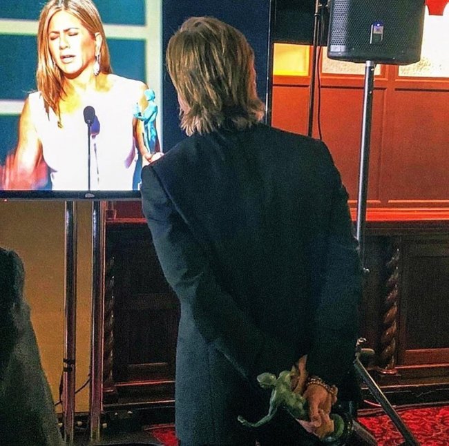 Брэд Питт смотрит речь Дженнифер Энистон