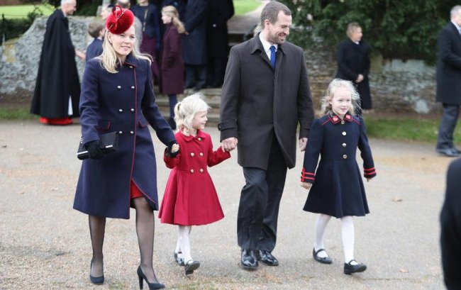 Сын принцессы Анны Питер Филлипс с женой Отэм Келли и двумя дочками Саванной и Айлой