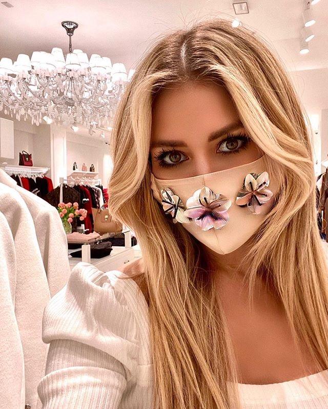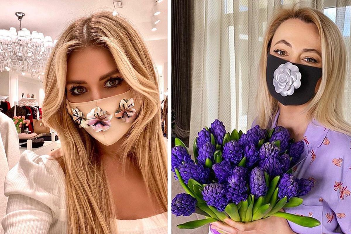 Яна Рудковская в защитной маске собственного производства