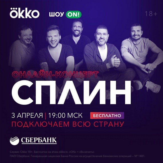 В рамках онлайн-концерта группа «Сплин» ответит на вопросы слушателей. Свой вопрос можно задать в группе онлайн-кинотеатра Okko в соцсети ВКонтакте. Авторы лучших будут традиционно награждены подписками от Okko и получат персональные подарки от группы «Сплин». Количество призов ограничено.«Шоу ON!» — проект с живыми концертами от Сбербанка и мультимедийного сервиса Okko, созданный, чтобы радовать поклонников музыки, которые оказались лишены шоу любимых исполнителей из-за отмены массовых мероприятий, а также призванный сделать искусство доступным для всех жителей России и мира. Live-выступления рок- и поп-звезд проходят в Okko каждую пятницу и субботу.