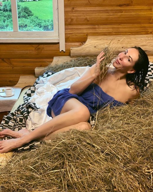 Звезда показала несколько очень интересных кадров, где запечатлена на сене в деревянном доме. По всей видимости, Алика посетила баню, так как выглядит свежей и румяной. Смехова обернулась полотенцем и элегантно прилегла на кровать. Она уточнила у фанатов, ночевали ли те когда-то на сеновале, и подписчики признались, что у них не было подобного опыта.