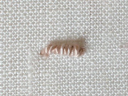 Другие названия стежка Витой узел: "спиралька", "катушка", "гусеница", витой стежок. Он может быть использован как лепесток или как тычинка цветка.