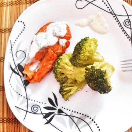 dianchkin: «Перешли с супругом на правильное кормление!Оказывается это чрезвычайно аппетитно и занимательно. Поужинали сейчас запеченной рыбкой с брокколи на пару и соусом из йогурта»