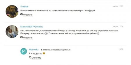 Эта тема могла бы показаться курьезной, но ее творцу не до хохота. Она замужем 5 лет, есть малюсенький ребенок. Все это время ее супруг ездит стричься к собственной былей девушке-парикмахеру. «У данной девушки ничего не поменялось за это время, не замужем, деток нет. Может быть, у меня это просто заморочки, дома все-же сижу с ребенком, в голову всякое лезет... С ним разговаривала, он не желает от нее уходить, мастер она превосходный и привык, рядом с домом, разговаривает: «Ничего не размышляй, люблю лишь тебя», — поделилась дама. Мнения форумчан разделились. Одни считают ситуацию очень подозрительной, иные убеждены, что предлогов для ревности здесь нет. Что скажете вы?Прочитать эту дивную историю можнож здесь.