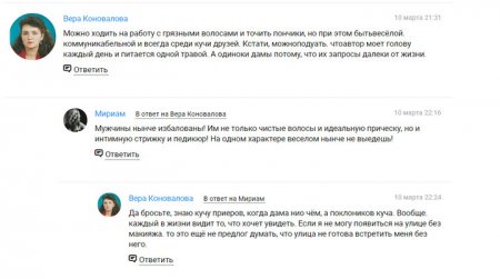 Пользовательница, создавшая эту очень провокационную тему, уверена: выйти замуж одиноким девушкам мешает лишь их лень: «Вот смотрю я на таковых желающих выйти замуж и фигею!Она дозволяет себе ходить на работу с запятанными волосами, точит пончики и жалуется, что парней нет!» Женщины здесь начали вспоминать собственных знакомых: благовидных и неприглядных, ухоженных и неопрятных, замужних и незамужних и проводить параллели. Одни убеждены: наружность ни при чем, иные вправду считают, что, ежели одинокая дама серьезно возьмется за себя, счастье ее здесь же отыщет.