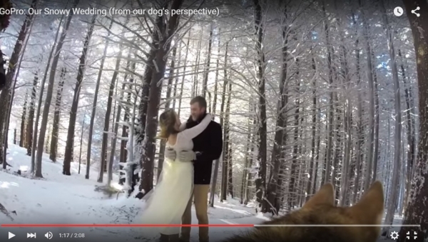 Мечтали ли вы когда-нибудь увидеть важное для вас событие другими глазами? Молодожены из США нашли оригинальный способ воплотить мечту в жизнь: они просто закрепили камеру GoPro на ошейник своей любимой собаки Райдер. Ни о чем не подозревающая любимица смогла показать свадебный переполох с совершенно другой стороны: приготовления невесты, фотосессия с родственниками, прогулка по снегу во время церемонии и даже вечерние посиделки с гостями мы видим с нижнего ракурса. Райдер даже сумела запечатлеть красоту горных пейзажей штата Теннесси, где проходила свадьба ее хозяев.