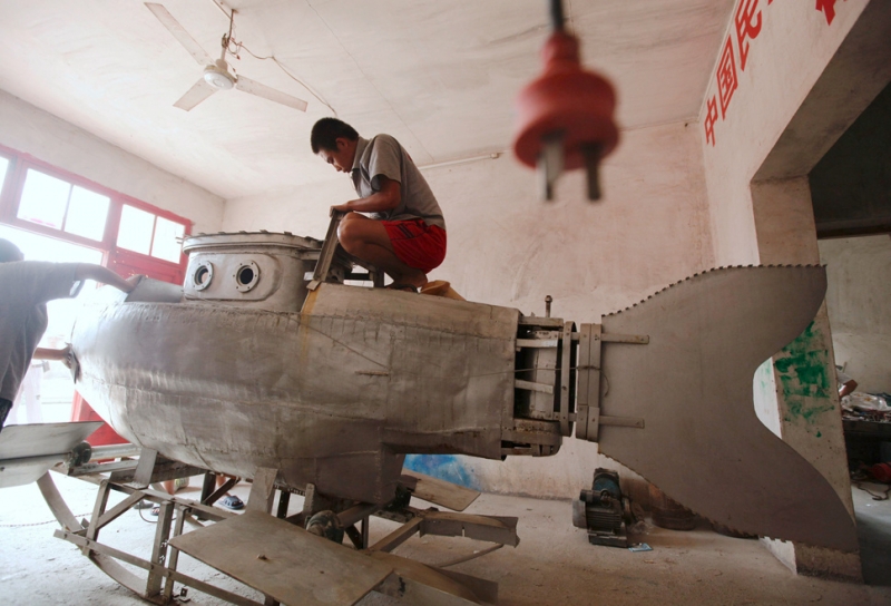 Бывший работник текстильной фабрики Чжан Уи начал свой путь к славе в 35 лет, когда лишился работы. Он заперся в промышленном ангаре на окраине городка Ханьянг и соорудил из подручных материалов свою первую подводную лодку. Через несколько лет, в 2012 году, в ангаре стояло уже несколько самодельных чудовищ, одно страшнее другого. И они работали! Субмарины могли погружаться на глубину 20–30 метров, вмещать капитана и одного пассажира, плыть в течение 10 часов, а главное — собирать морские огурцы!*