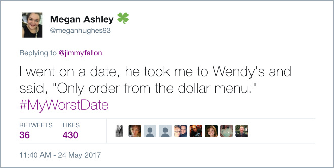 К сожалению, с тех пор худших свиданий в мире меньше не стало. Поэтому мы спешим поведать тебе свежие истории о худших свиданиях, рассказанные настоящими людьми с помощью «Твиттера».