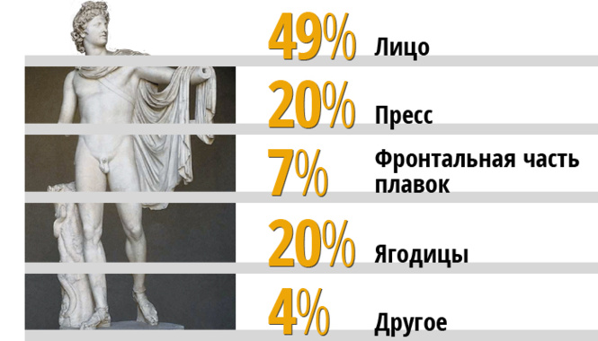 Соответственно, на грудь, ноги и плечи можно махнуть рукой, а все внимание уделить упражнениям на пресс и ягодицы. Как накачать область, в котором кровно заинтересованы семь разнузданных процентов, мы тебе подсказать не можем. Тренеры по фитнесу упорно игнорировали наши расспросы. Правда, говорят, в продаже имеются плавки с силиконовыми вставками, но это уже явное пораженчество.