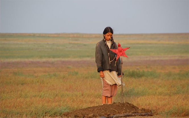Тоскливая неулыбчивая семья живет в глухой степи, и зритель вздрагивает, когда там хоть что-то происходит.
