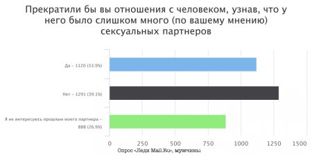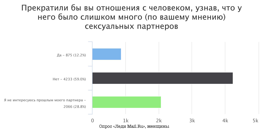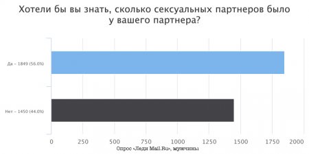 Интересно, что мужчины, больше чем женщины, хотели бы быть в курсе количества предыдущих связей своей партнерши. Женщин этот вопрос интересует куда меньше.
