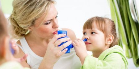 Если нужно промыть нос ребёнку, то методика промывания точно такая же, единственное, попросите малыша задерживать дыхание на вдохе. Главное, чтобы он не боялся этой процедуры, поэтому покажите сначала процесс на своём примере.