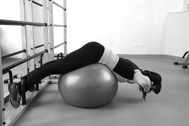 - Очень полезны упражнения для мышц-разгибателей позвоночника — так называемых паравертебральных мышц. Исходное положение: лежа на мяче животом, туловище свешивается вперед. На выдохе поднять туловище параллельно полу и вернуться в исходное положение. Сделать 10–15 повторений.