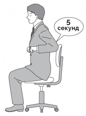Если ваша работа не позволяет даже встать, все равно можно немного подвигать мышцами. Сидя на стуле, не облокачивайтесь на спинку. Свесьте руки по бокам и потянитесь вверх от поясницы до макушки. Не скрещивайте ноги, поставьте их ровно на пол. Затем подвигайте плечами вверх-вниз и расслабьте руки.