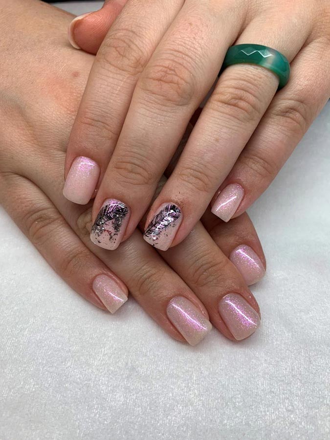 6. Для создания модного дизайна ногтей хаотично накладываем крупные блестки. Это будет первая часть декорирования ногтя.