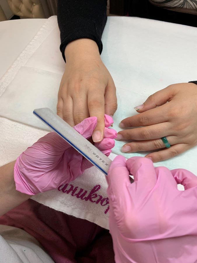 1. Первым этапом придаем ногтям нужную форму — в нашем случае она будет квадратной.