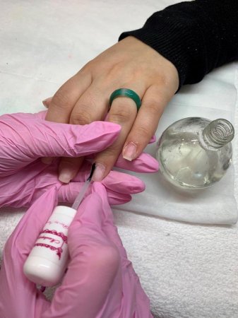 2. Далее наносим размягчитель для кутикулы. С его помощью можно будет легко удалить наросшие частички кожи.