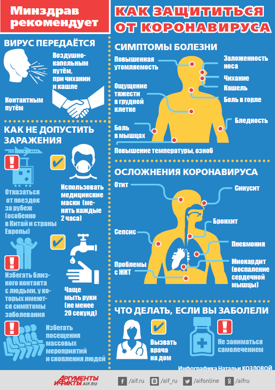 Всемирная организация здравоохранения объявила пандемию коронавируса. Количество заболевших и умерших по всему миру увеличивается с каждым днём. Во всех странах принимаются беспрецедентные меры безопасности, а СМИ не перестают предупреждать об угрозе дальнейшего распространения болезни. Как в такой ситуации сохранить спокойствие, но при этом не стать слишком беспечным?Наш эксперт – практикующий психолог, автор и тренер программ личностного роста Елена Шинкова. Для того чтобы не поддаваться панике, необходимо разделять факторы, на которые мы можем повлиять, и те, защититься от которых не в нашей власти. Мы неспособны отменить возникшую эпидемию, но в наших силах сосредоточиться на том, чтобы принять разумные меры безопасности – не забывать мыть руки, носить медицинские маски, избегать толпы. Страх перед вирусом должен быть именно разумным, ведь чрезмерная тревога может сослужить нам недобрую службу. Игры разума Страх смерти и болезни неизбежно преследует нас на протяжении всей жизни. Но если постоянно об этом думать, придётся навсегда запереться в квартире и всё равно жить в постоянной тревоге. Более того, навязчивые мысли о заражении, непрекращающееся обсуждение эпидемии, ежеминутное прослушивание тревожных новостей приводит к тому, что в головном мозге постепенно прокладываются всё новые и новые нейронные связи, ответственные за запоминание пугающей информации. В результате формируются негативные установки, которые незаметно командуют нашим организмом. Ведь в конечном итоге всеми процессами, в том числе и работой иммунной системы, «заведует» именно мозг. То есть, если бояться слишком сильно, мозг как бы программирует тело на то, чтобы заболеть, и иммунитет действительно снижается. Более того, в ситуации, когда паника нарастает, мы начинаем неосознанно саботировать необходимые меры безопасности – забываем мыть руки, случайно оставляем медицинскую маску дома перед поездкой в многолюдном метро, постоянно трогаем лицо. Происходит это оттого, что существует психологический механизм, который в норме помогает организму справиться со страхом, – чтобы перестать бояться, нужно поскорее пережить пугающее событие и оставить его в прошлом. Именно поэтому опасные ситуации подсознательно часто кажутся нам привлекательными: неслучайно тех, кто боится высоты, так и тянет заглянуть в пропасть. То же самое происходит и в случае с распространяющейся эпидемией – подсознание даёт установку: чтобы справиться с чрезмерным страхом болезни, надо… заразиться и переболеть! Поэтому медицинская маска и антибактериальный гель остаются забытыми дома. Отрезать панику Чтобы грамотно защититься от вируса, нужно непременно избавиться от неправильных мыслей и установок. Для этого есть простая психологическая техника. Возьмите лист бумаги и разделите его на две половинки. Слева напишите все тревожные мысли, которые вас преследуют. Например: «У меня слабый иммунитет, я обязательно заболею». Или: «Мне не везёт, поэтому именно я встречу в метро заражённого человека». Справа напротив каждого пункта сформулируйте контраргумент. При этом неважно, верите ли вы в позитивные утверждения. Главное – просто выписать их на лист бумаги. Например, напротив записи о слабом иммунитете напишите, что защита вашего организма сильна как никогда и вы спра