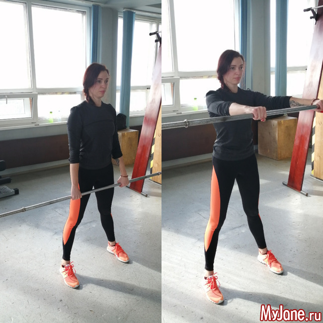 Упражнение 2. Подъем утяжелителя перед собой на прямых руках