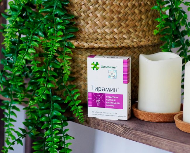 Регулярный прием Тирамина отлично зарекомендовал себя в комплексном лечении как гипотиреоза, так и гипертиреоза. Нормализуя уровень тиреоидных гормонов, Тирамин повышает устойчивость щитовидной железы к стрессам и другим неблагоприятным воздействиям.Уникальность Тирамина заключается в том, что он не замещает функцию щитовидной железы, а регулирует и продлевает ее работу. Он целенаправленно встраивается в поврежденные клетки органа, восстанавливая их функционирование, благодаря чему клетки продолжают синтез необходимых гормонов.Тирамин на защите вашей щитовидной железы!