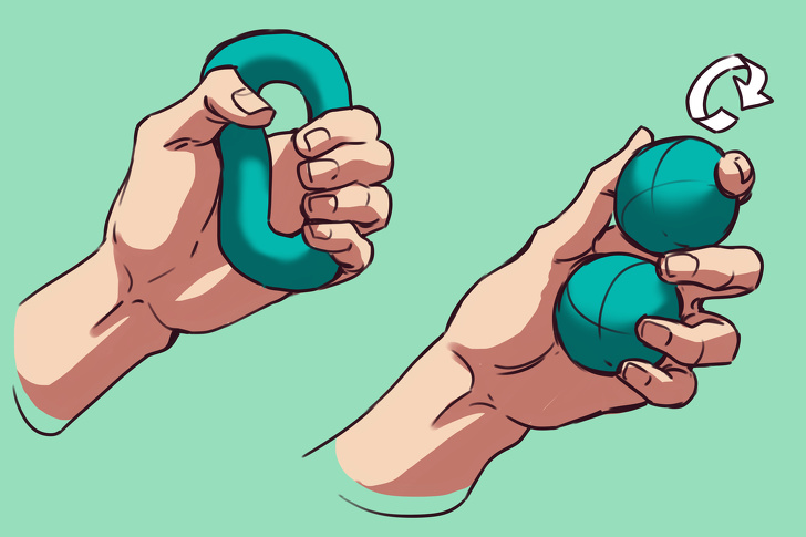 Вариант для ленивых. Вам понадобятся 2 шарика для рук или кистевой эспандер. Перебирайте шарики или сдавливайте эспандер в течение рабочего дня. Эта зарядка между делом убережет от воспаления суставов.