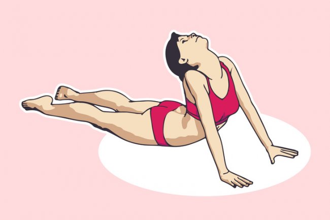Поза кобры: лягте на живот. Отведите ноги назад и упритесь руками в пол, расположив их под плечами. Приподнимите верхнюю часть тела от пола, распрямив локти. Задержитесь в этом положении на 2 минуты.