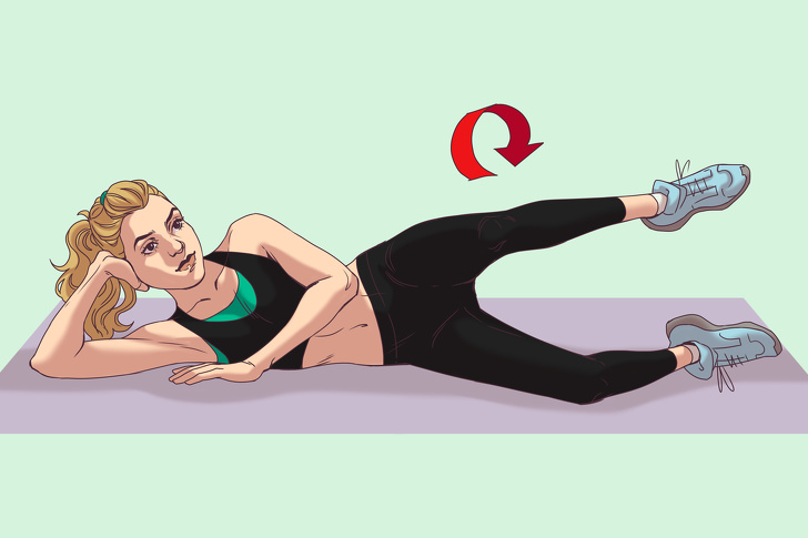 Лежа на боку, согните ногу в колене и поднимите ее вверх.