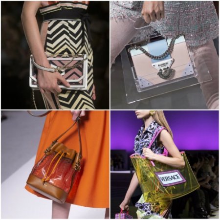 Сумки из прозрачного материала также входят в число модных тенденций, что дает вам возможность выразить свою индивидуальность через их содержание. Большие и громоздкие сумки преобладают, но встречаются более компактные модели, а благодаря прямым и строгим линиям они подходят даже для офисного стиля.