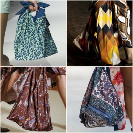 Под влиянием практической городской моды дизайнеры создают дизайн сумки-торбы. Некоторые даже закрываются с пучками и узлами, напоминающими узел или мешок, но их красочный принт делает их интересной и яркой находкой для весны.