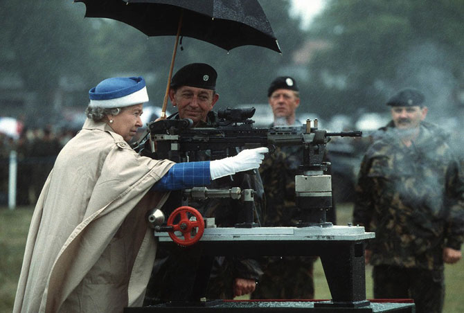 2. Она умеет стрелять.Это фото было сделано во время визита королевы на стрельбище в Суррее. Когда королеве показали эту винтовку L85, она не удержалась и сделала несколько выстрелов.