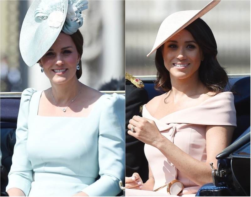 Кейт Миддлтон и Меган МарклТоржественная церемония началась у Букингемского дворца и прошла вдоль улицы The Mall. Все члены королевской семьи проехались в конных экипажах от дворца к площади Horse Guards Parade, приветствуя подданных, собравшихся посмотреть на зрелище. Затем же монаршая семья вернулась в Букингемский дворец и по традиции в полном составе вышла на балкон, чтобы посмотреть парад авиации.
