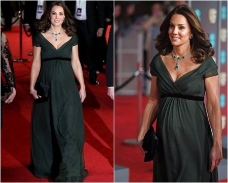 Кейт выбрала струящееся платье темно-изумрудного цвета от Jenny Packham. Такой ход оказался вполне ожидаемым. Дело в том, что члены королевской семьи Великобритании предпочитают не участвовать в массовых акциях и не высказывать свое мнение публично, если только это не делается с помощью официальной пресс-службы членов королевской семьи.