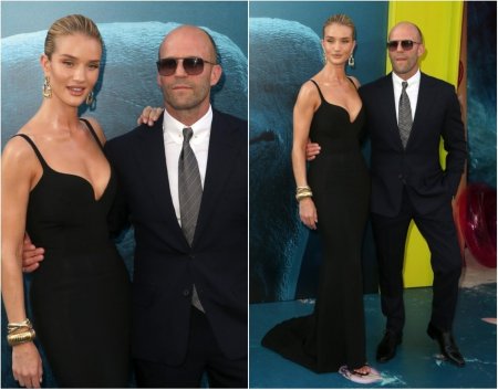 51-летний Джейсон Стэйтем снялся в новом фильме «Мег: Монстр глубины», премьера которого накануне прошла в Голливуде. На ковровой дорожке актер появился вместе со своей очаровательной возлюбленной — 31-летней моделью Роузи Хантингтон-Уайтли. Пара позировала в обнимку и одаривала поклонников воздушными поцелуями.