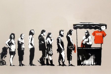 Он не боится высказываться на острые социально-политические темы и четко демонстрирует, что искусство неотделимо от событий времени. Бэнкси показывает, что в современном искусстве намного важнее не техника исполнения, а идея. У эксцентричного художника много последователей, но наметанный глаз довольно точно распознает, где оригинал, а где подражание. Мастер изменил представление о современном искусстве так же, как в свое время это сделал горячо любимый мною Жан-Мишель Баския. У обоих в конечном счете появилось много подражателей, но эти копии только подчеркнули уникальность оригинала. То, чего касается рука Бэнкси, превращается в золото. Бывало, его работы исчезали с улиц вместе с кусками стены — а через время появлялись на аукционах и стоили огромных денег. Сегодня цены на Бэнкси стартуют от нескольких десятков тысяч долларов и доходят до двух миллионов.