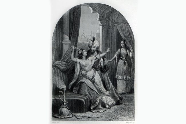 Султан Ибрагим I (1615—1648) нападает на вдову своего брата Мурада IV на глазах своей матери Кесем (1589—1651) в крепости Йедикуле. Legion-media.ru