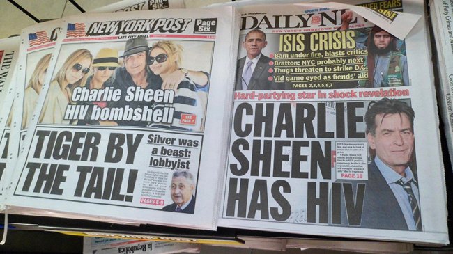 Осенью 2015 года Чарли Шин признался, что он имеет положительный ВИЧ-статус.