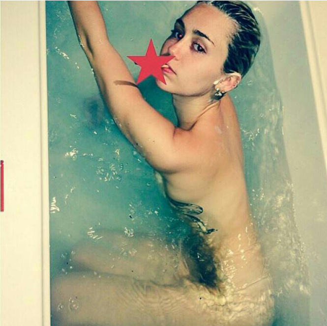 На снимке, изготовленном бойфрендом(на тот момент)певицы, Майли не совсем лишь нагая, но еще и с сигаретой!Хорошо, что мы не ханжи!