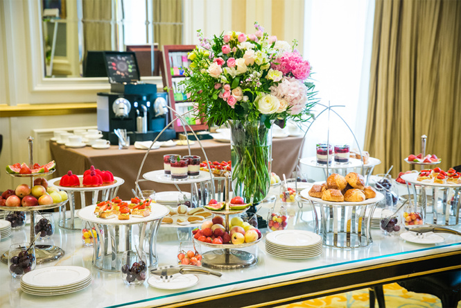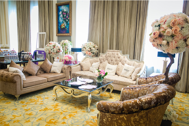 На 2 дня самый великий номер отеля St. Regis Moscow Nikolskaya — «королевский» люкс — перевоплотился в оазис красы и стиля. Поистине царские апартаменты с 5-метровыми потолками, ценными работами знаменитых живописцев и с невозможной дамской комнатой были украшены живыми цветами от Florist Gump.