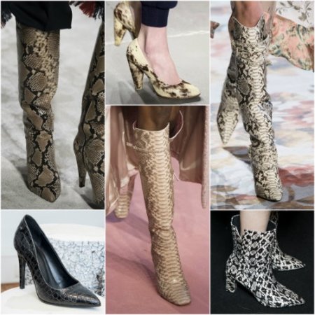 Обувь с анималистическим принтом относится к модным тенденциям осенне-зимнего сезона 2018-1919 годов. Среди всех животных принтов змеиный наиболее заметен, но вы также можете найти много обуви и сапог с так называемым «коровьим шаблоном».