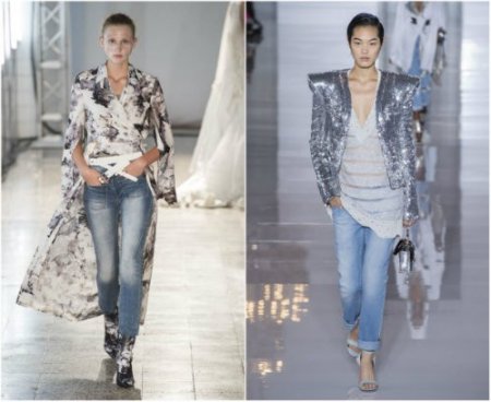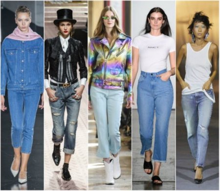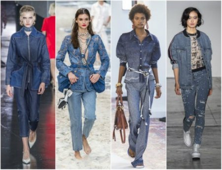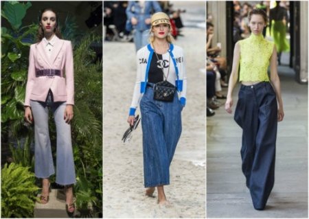 Джинсы сезона весна/лето 2019 просты и элегантны. Джинсы с широкими штанинами, высокой талией и длиной до щиколотки — главные тренды. Любители спорта будут рады услышать, что джинсы-бойфренды снова стали хитом. Новыми в этом сезоне являются джинсовые приталенные куртки или с поясом.