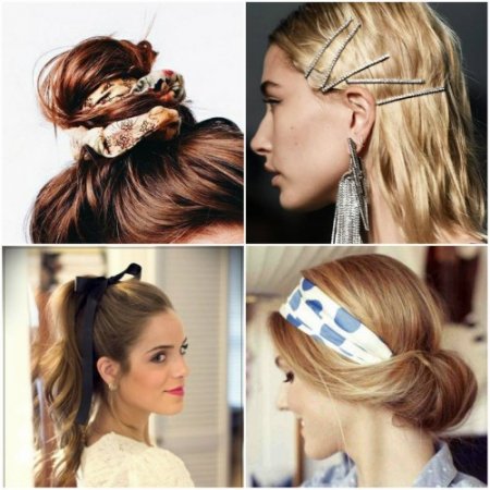 Шарф вместо ленты для волос, любые заколки, которые убирают челку, ленты и многое другое. Диадемы из ткани также являются хитом.