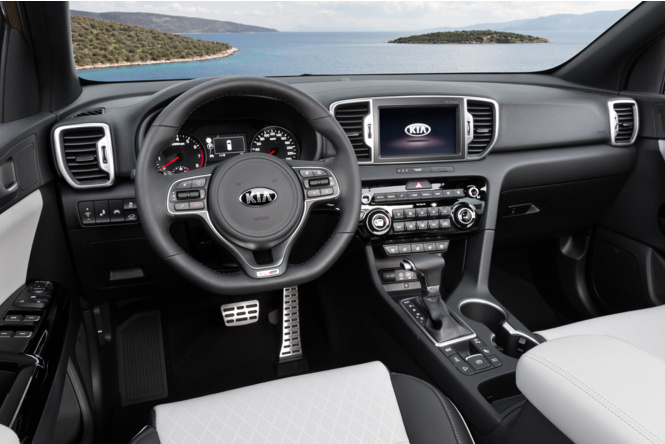 Садясь в Sportage, быстрее представляешь себя не тренером покемонов, а каким-либо блейдраннером: дизайн 4-ого поколения вышел необыкновенно динамичным и технократичным. А в модификации GT-Line добавлены 19-дюймовые литые диски, блестящие молдинги, противотуманные фары «кубики льда», двойная труба выхлопа.