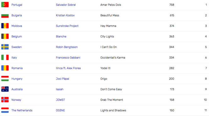 - 11 Португалия — Salvador Sobral — Amar Pelos Dois