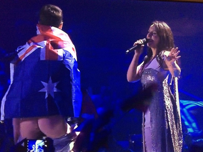 В разгар рулад Джамалы на сцену выскочил пранкер и быстро показал попу. Короче говоря, вел себя не принужденно.