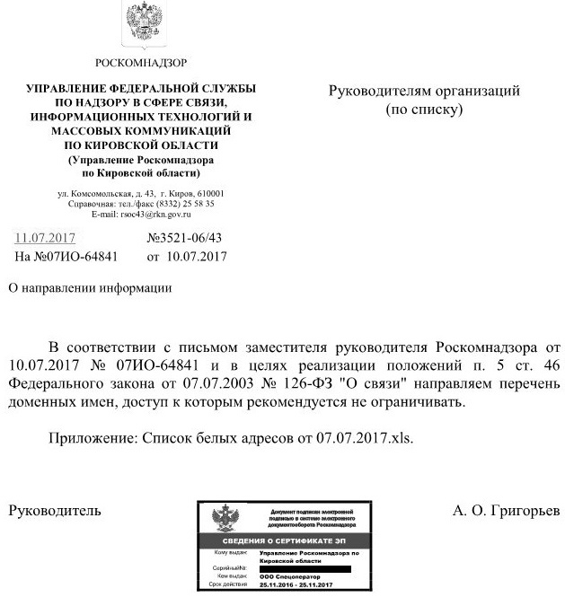 Роскомнадзор принялся рассылать списки разрешенных сайтов. Похоже, это развлечение ему понравилось!